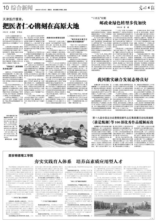 2025年12月26日,中央重点党报《光明日报》以《夯实实践育人体系培养高素质应用型人才》为题,深度报道了学校实践育人工作的创新探索与显著成效。报道聚焦学校独具特色的“三三四”实践育人体系,系统梳理了紧扣立...