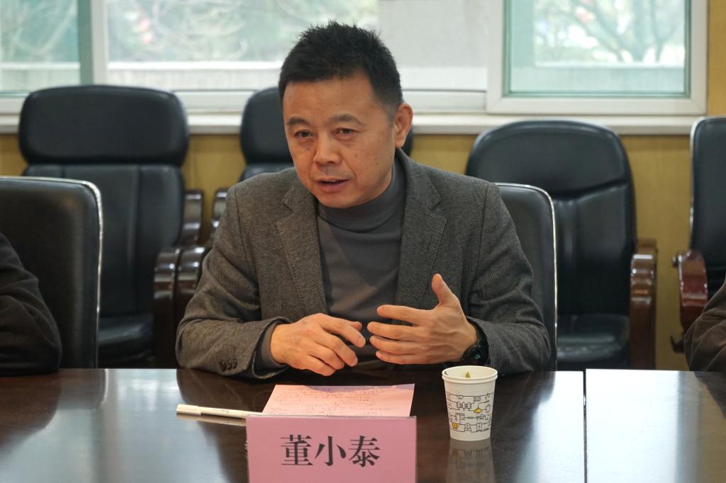 王庭良代表学院对董小泰会长一行到来表示热烈欢迎,详细介绍了学院的办学情况、创新创业及就业工作情况。