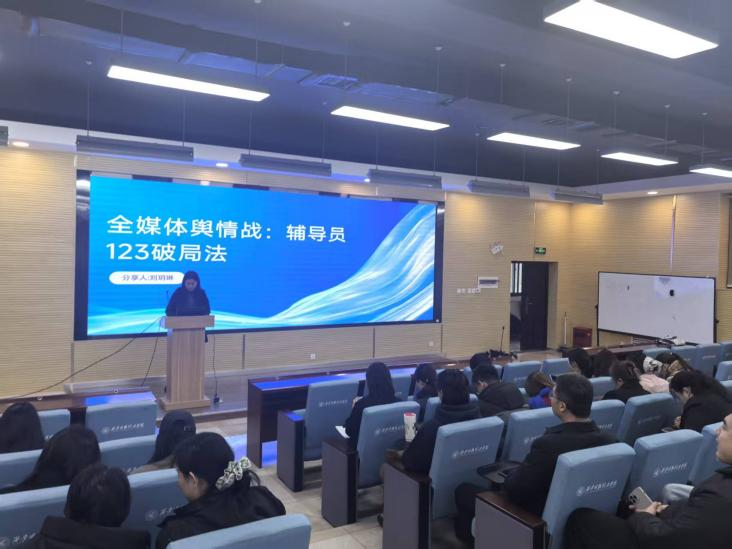 沙龙上半场,刘玥琳老师以“全媒体舆情战:辅导员123破局法”为题,结合当前网络信息传播特点与高校学生工作实际,分享了其在应对与引导校园舆情方面的思考与实践。她系统阐述了“一个核心、两个环节、三支队伍”的工作方法,强调辅导员在复杂舆论环境中应主动识局、破局,提升媒介素养与应急处突能力,筑牢校园安全稳定防线。其内容紧贴现实,案例丰富,为同仁们提供了具有操作性的工作参考。