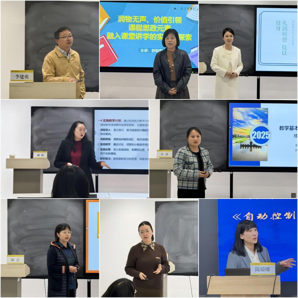 11月13日的教学技能专题课程聚焦课堂实效与价值引领,旨在夯实新入职教师的教学基本功。智能制造与控制技术学院副院长李建勇详解“BOPPPS是快速实现OBE的便捷方法”,通过模块化教学框架,帮助新教师掌握以学生为中心的课堂设计技巧;艺术与设计学院教授舒粉利围绕“课程思政元素融入课堂讲学的实践与探索”,分享了如何将价值引领无痕融入教学全过程,为课程思政建设提供实操路径;明德科技职业学院谢莹老师以“高校教师礼仪规范和为人师表”为题,从仪容、仪表、仪态等方面展开培训,助力新教师塑造端庄得体的职业形象;语言文化传播学院副院长刘勇的“教学设计与创新”课程,系统讲解了教学目标设定、教学方法选择、教学过程优化的核心策略;经济与管理学院副教授解蕾以省级课程思政精品课为案例,聚焦“课程思政教学设计的实施”,提供了可落地的思政元素挖掘与融入方法;经济与管理学院副院长许萍详解“教学基本规范与教学评价”,明确了教学各环节的质量标准与考核要求;质量管理与评估办公室主任张瑜围绕“高质量发展与本科教学工作合格评估”,解读了学校评建工作部署与核心要求,强化了新教师在评建工作中的责任与担当和奉献意识。
