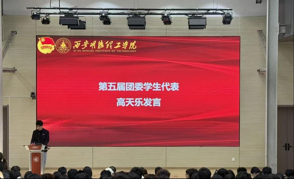 大会在激昂的共青团团歌和校歌声中拉开序幕,郭庆宣读了《共青团西安明德理工学院明德科技职业学院委员会关于2025-2026学年院级学生干部任命的决定》。他感谢学院第四届团委团学干部们的付出与奉献,同时他希望新一届团学干部能够牢记使命,认真履行职责,共同书写学院的美好未来!
