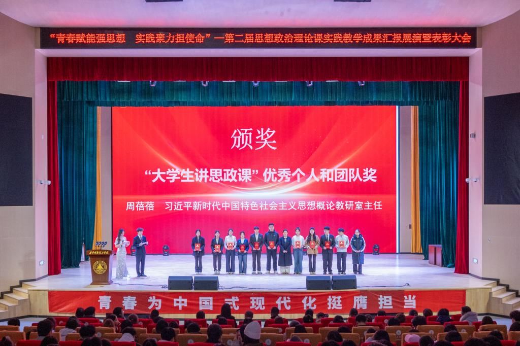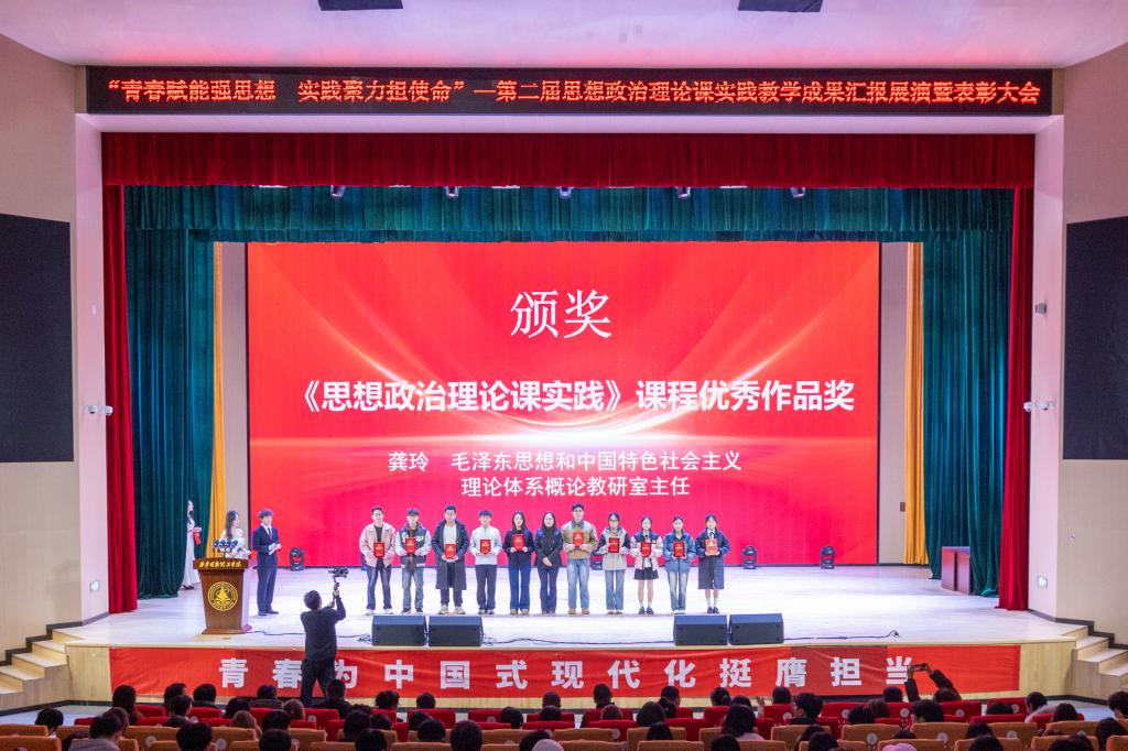 精彩的节目告一段落后晚会特别设置了颁奖环节,对在思政实践各类活动中表现突出的学生个人与团队予以表彰。其中包括“思想政治理论课实践”优秀作品奖、“大学生讲思政课”优秀个人及团队、“场馆里的思政课”优秀作品、“微电影”优秀作品、“我眼中的中国”优秀作品等多项荣誉,覆盖了理论宣讲、影像创作、场馆实践、主题征文等多个维度,展现了思政实践教学的广度与深度。