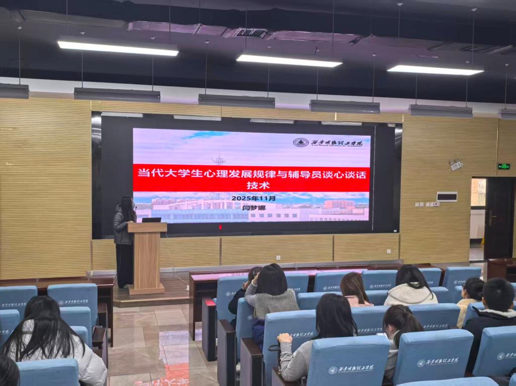 随后,辅导员闫梦娜围绕《当代大学生心理发展规律与辅导员谈心谈话技术》进行了分享。闫老师系统梳理了当代大学生群体呈现出的阶段性心理发展特点与常见困惑,并重点分享了基于学生心理发展规律的谈心谈话策略与核心技术。她通过生动的实例,详细讲解了如何建立信任、有效倾听、积极共情以及引导反思,为辅导员们提升日常思想政治教育和深度辅导的精准性、有效性提供了切实可行的方法论指导。