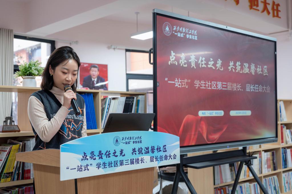 大会伊始,党委学生工作部王悦琳宣读了《关于“一站式”学生社区楼长、层长任命的决定》文件,本届共有18名同学获聘楼长,60名同学获聘层长。