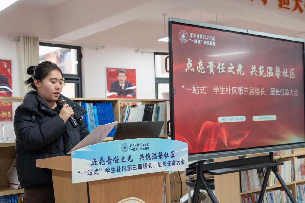 楼层长作为“一站式”学生社区管理和服务的骨干力量,是学生社区治理的重要抓手,此次任命大会有助于楼层长明晰自身工作职责、激发创新活力,我们共同期待新一届楼层长们在新的任期内,能够以更加积极的姿态参与到学生社区服务与管理中,在实践锻炼中,不断为构建和谐、文明的学生社区贡献力量,共同缔造“一站式”学生社区综合育人和全域管理新格局。