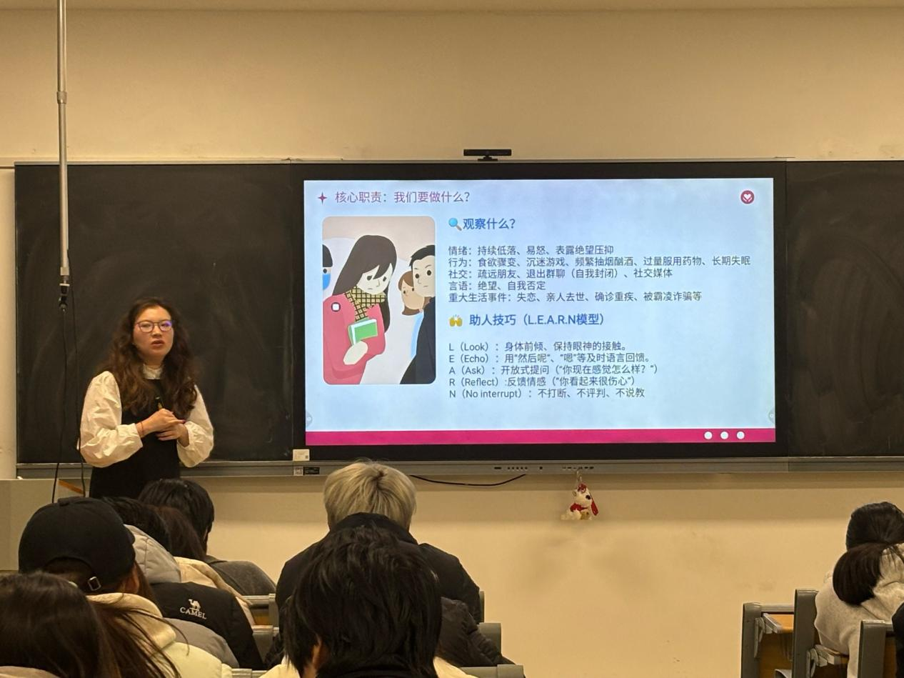 最后,强老师从“言语信号、行为信号、情绪信号、生理信号”四个层面,细化梳理了心理危机的典型预警特征与工作流程,提醒学生及时上报不是告密,而是对同学生命安全的负责,避免延误干预时机。