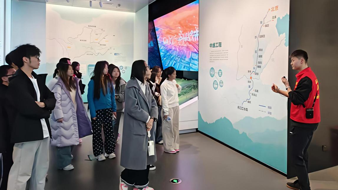 在讲解员的带领下,师生们对秦岭博物馆的国家定位、“山水玉璋”的建筑设计、“三展六厅”的展览陈列有了初步了解,参观了“和合南北 泽被天下——中国秦岭文化展”、“秦风楚韵 古道春秋——商洛历史文化展”、“红色热土 浴火新生——商洛革命记忆展”等展厅。展厅借助丰富标本与影像,大家直观感受了秦岭历经亿万年形成的独特地貌;展厅中多样的动植物标本与生态模型,展现其“生物基因库”内涵。同时,了解到秦岭作为“中央水塔”,在南水北调中线工程中的关键作用,沿线严格的生态保护举措,让大家深刻认识保护生物多样性、守护生态平衡及秦岭生态保护对国家水资源战略的重大意义和秦岭在中华文明发展中的重要地位。师生们对商洛境内的古人类演进、区域发展重大历史进程、人文风俗及商洛人民在中国共产党领导下积极投身革命和新中国建设的辉煌成就有了深入了解。
