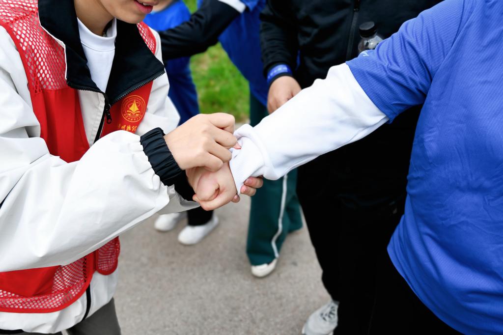志愿者们分散在赛道全程、起跑终点、打卡点位、游戏区域,分工