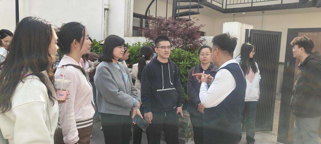 黄良新村近年来在基层党组织带领下,实现了从基础设施薄弱、发展动力不足的传统村落,到艺术氛围浓厚、业态多元的乡村旅游示范村的华丽转身。在黄良村党支部副书记王栋永的引导下,党员教师实地参观了村容村貌及黄良文化创意艺术街区,重点走访了TABLE FOR TWO咖啡馆、青芷汀兰手工皂工作坊等由青年“新村民”创办的特色业态。整洁优美的环境、错落有致的空间、生机勃勃的经营场景,生动展现了“艺术介入乡村”理念的实践成果。