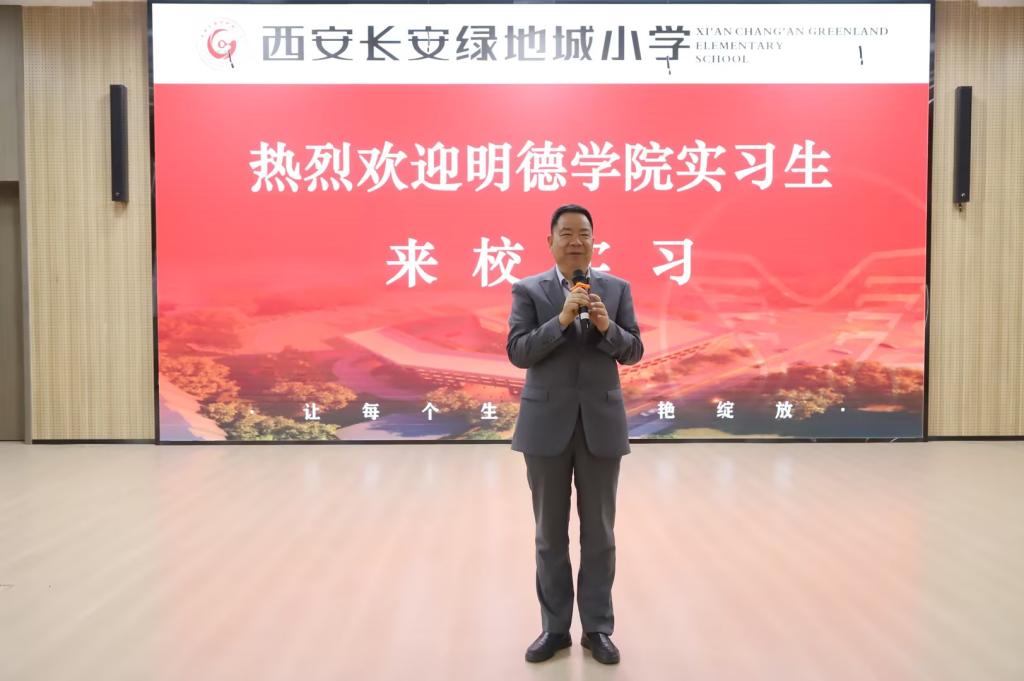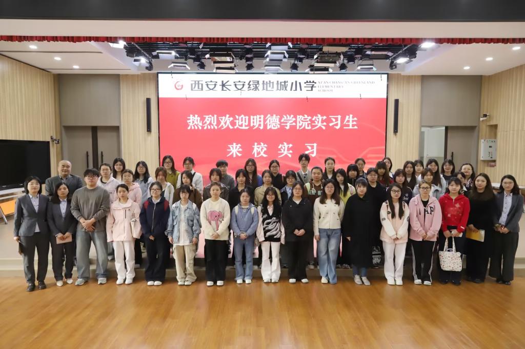 4月7日,西安明德理工学院语言文化传播英语专业,英语学科教学方向实习生走进西安长安绿地城小学,正式开启实习之旅。西安长安绿地城小学李正岐校长、裴翔主任,英语组全体指导教师,西安明德理工学院英语专业负责人霍小静,指导教师陈虹、吴月等出席实习启动仪式。