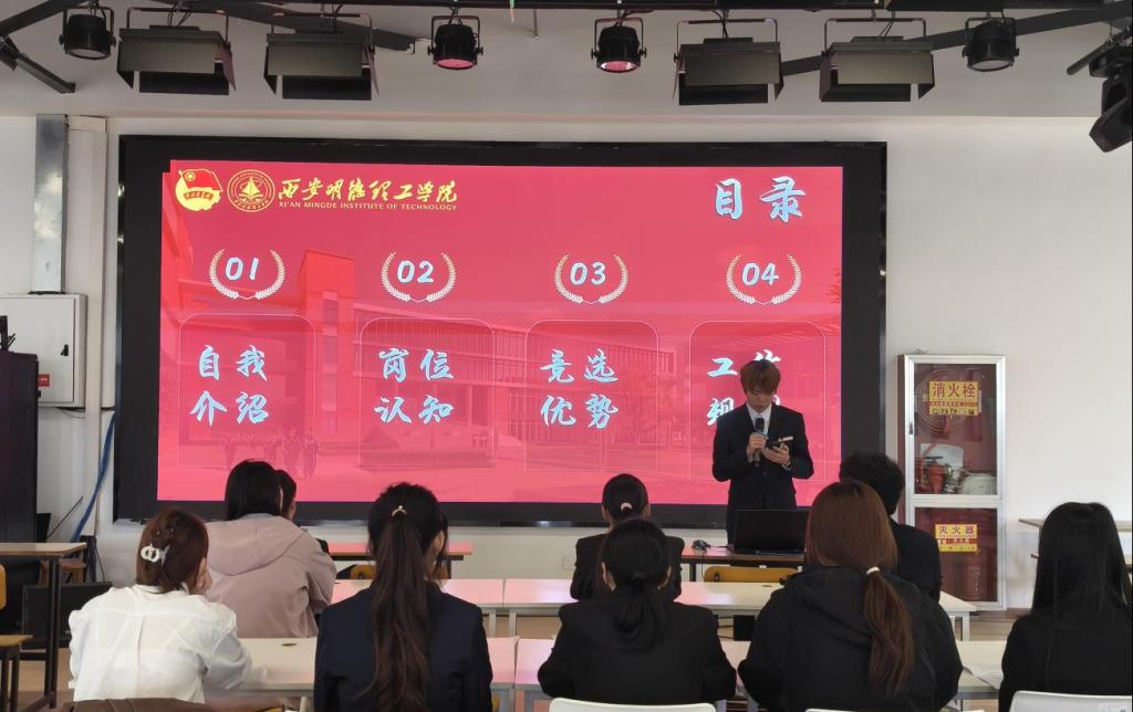 答辩现场,各参选团支部书记与团支部代表依次登台,围绕思想建设、团日活动、学风营造、志愿服务、班级凝聚力等方面展开汇报。参选团支部书记以生动翔实的内容,展现自身履职尽责、服务同学、引领青年的责任与风采;各团支部则通过活动回顾、成果展示、未来规划,呈现出朝气蓬勃、团结向上的良好风貌,充分体现了明德青年坚定理想、奋勇争先的青春姿态。