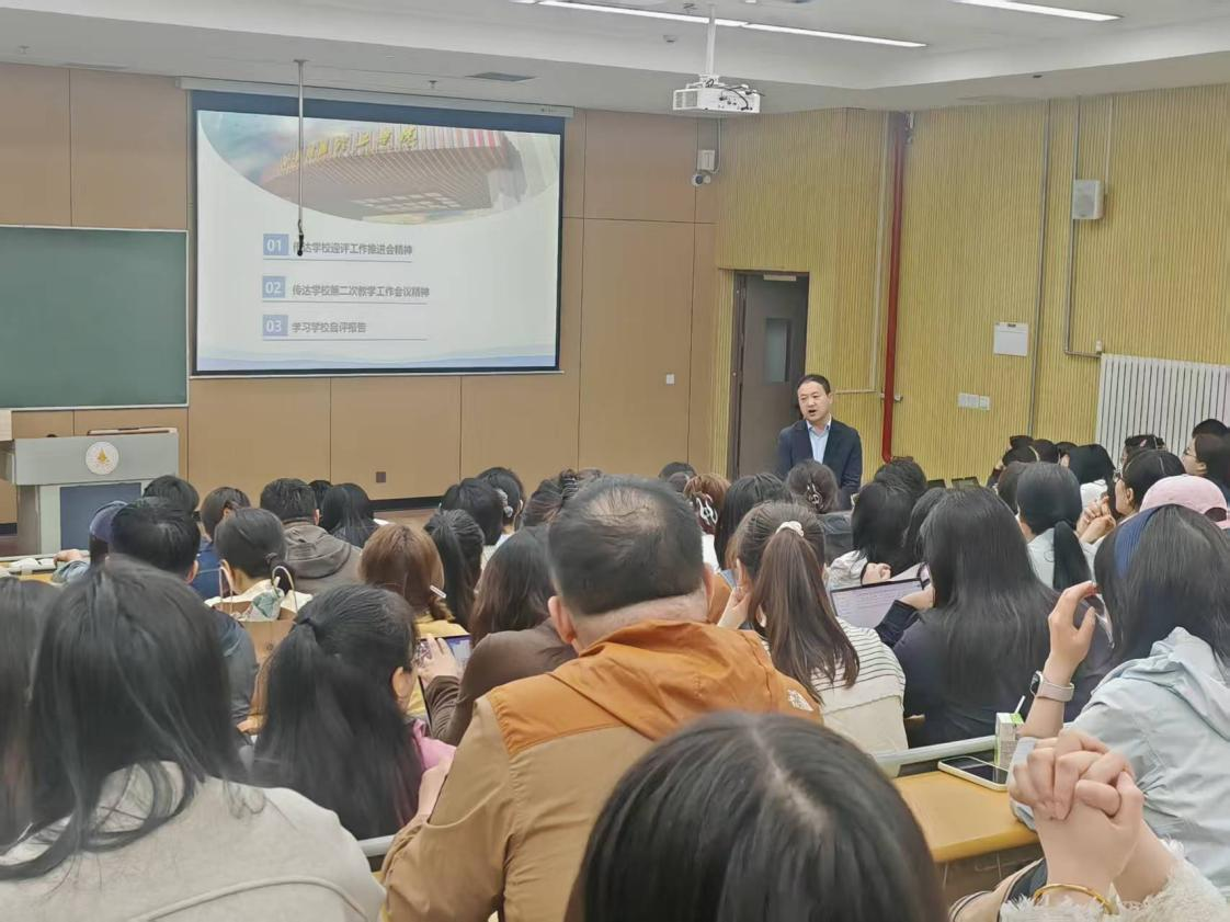 会上,学院党委书记兼行政副院长何文举传达了学校迎评工作推进会、第二次教学工作会议、办学条件评价迎评工作会等重要会议精神,带领学院教职工集中学习了学校自评报告,对学院迎评促建冲刺阶段各项准备工作和注意事项做了具体安排。他通报了学院领导、督导巡课过程发现的问题,提出了具体的整改要求和整改举措。围绕日常教学运行及管理、教学相关材料准备、教风学风建设、校外实习实训基地考察、实验室环境卫生及教学仪器设备使用等方面,学院将严格按照学校整体部署要求,开展再自查、再演练,确保各项迎评准备工作落实落细。广大教师要以高度的责任感投入到迎评工作中,对照评估指标体系,迅速开展全面的自查自纠,梳理材料、查找短板、制定改进措施,确保在立德树人、师德师风、稳定安全等底线、红线问题上万无一失。