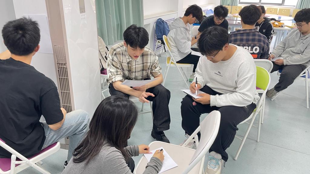 分享环节,同学们踊跃交流自己的观察与感悟。有同学表示:“沟通不仅是‘把话说出来’,更是‘让对方听明白’,既要学会清晰表达自己的想法,也要学会耐心倾听他人的意见,更要及时确认反馈,才能避免误解、达成共识。”大家纷纷表示,此次活动跳出了传统说教模式,用生动的体验让自己对沟通有了全新的理解,不仅学到了实用的沟通技巧,更感受到了团队中信任与包容的力量。