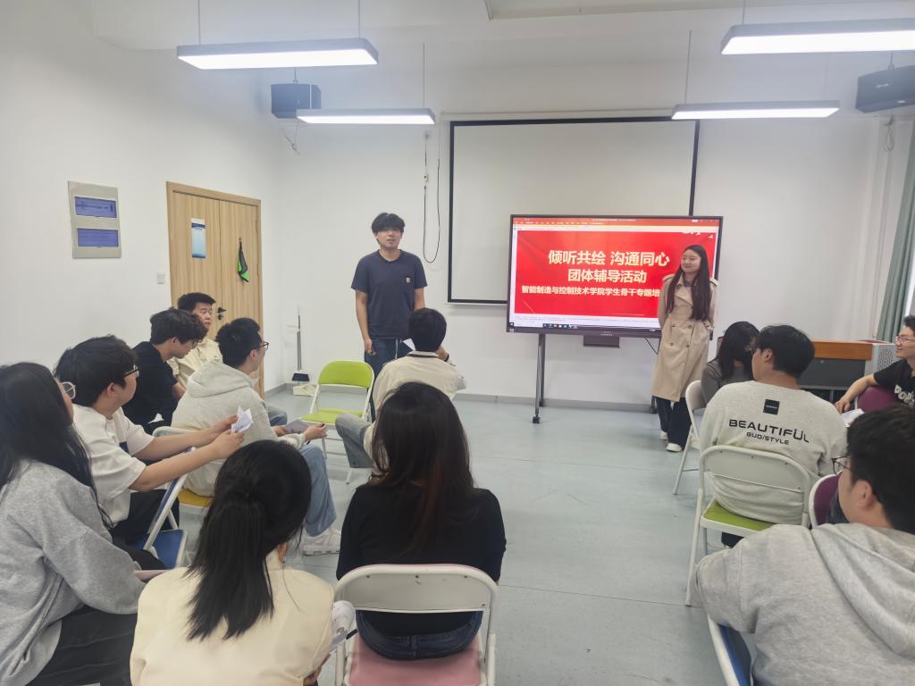 为进一步提升学生骨干的沟通协作能力,增强学生干部队伍的凝聚力与向心力,4月16日,智能制造与控制技术学院在明心楼南203室开展“倾听共绘 沟通同心”团体辅导活动,本次活动学院团委书记王菲主持,大学生心理健康中心赵璇老师担任指导,学院团学干部参与此次活动。