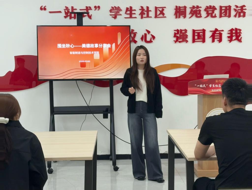 为深入贯彻落实学校第十一届“阳光护航”心理育人宣传季实践活动要求,构建“五育融合”心理健康工作体系,引导学生崇德向善、涵养品格,4月20日,智能制造与控制技术学院在桐苑一站式学生社区开展“围坐聆心——美德故事分享会”主题活动,活动由学院心理专干闫梦娜老师组织开展。
