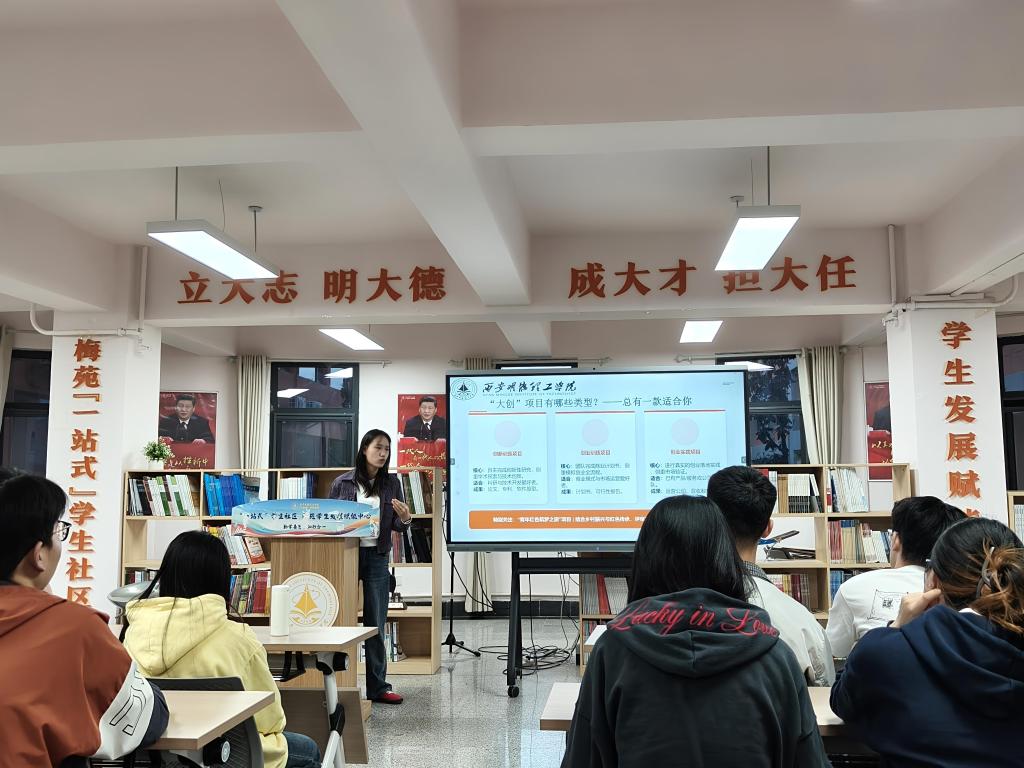 活动期间,2025年省级大学生创业训练立项项目参与人雷蕾围绕“致未来的创新者与创业者——陕西省大学生创新创业项目与重要赛事介绍”主题,就项目定义、核心目标、项目类型、流程要点、核心价值、重要赛事、注意事项进行了介绍,结合申报书写作进行了全流程指导。2025年省级大学生创新训练立项项目负责人严蕊结合自身大创项目实践经历,围绕团队组建与分工协作、选题思路与研究推进等方面作重点介绍,并分享了在实践操作、文献研读及成果总结中的心得体会,为在场同学提供了真实、可借鉴的参考。交流环节,在场同学与两位优秀学姐进行互动,气氛热烈融洽。