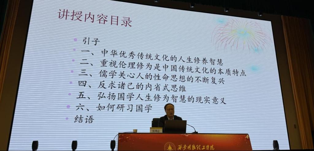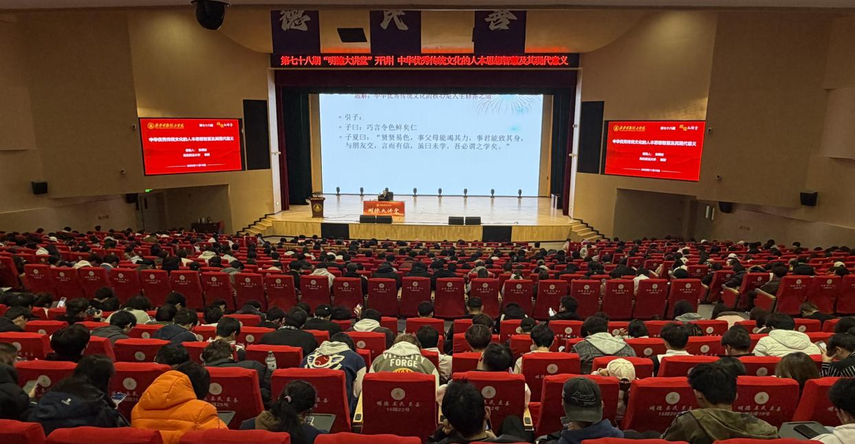 为深化中华优秀传统文化的当代价值认知,引导青年学子从传统智慧中汲取精神养分,11月10日晚19:00-21:00,我校“明德大讲堂”第七十八期在四季廊桥报告厅开讲。本次讲座特邀西北政法大学张周志教授担任主讲人,以“中华优秀传统文化的人本思想智慧及其现代意义”为主题,为1200余名师生带来了一场兼具文化厚度与现实温度的分享。讲座由马克思主义学院副院长惠斌主持。