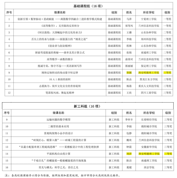 近日,全国民办高校课程思政联盟公布了2025年全国民办高校课程思政微课教学比赛获奖名单。西安明德理工学院在本次比赛中表现优异,共有两位教师获奖。其中,通识教育学院贺颖老师凭借《刚体定轴转动的角动量守恒定律》荣获基础课程组三等奖,智能制造与控制技术学院刘洋老师凭借《平面机构自由度计算》荣获新工科组三等奖,展现了学校在课程思政教学改革方面的成效。
