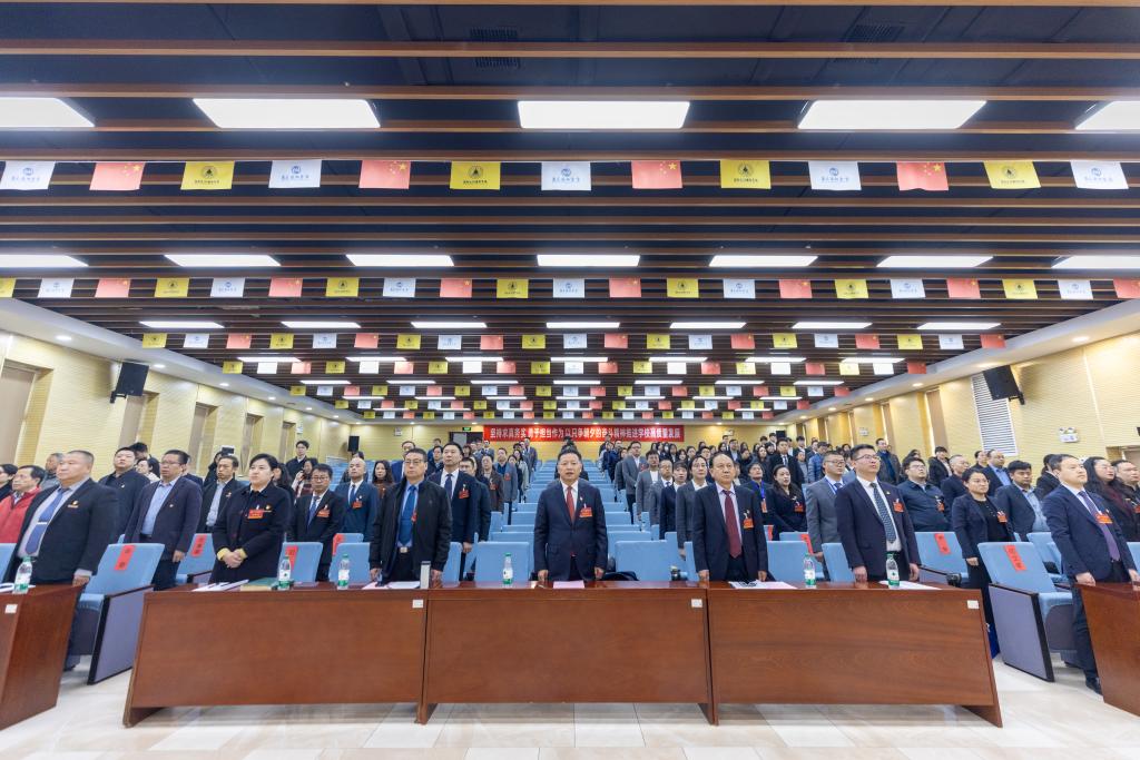 大会在雄壮的国歌声中拉开帷幕。党委书记马川鑫同志代表学校党委向大会作题为《坚持求真务实勇于担当作为以只争朝夕的奋斗精神推进学校高质量发展》的工作报告。报告从“坚定不移推进全面从严治党,持续提升党建工作质量”“深化内涵建设和改革创新,不断提高办学条件和水平”“推动党建与业务深度融合,促进学校高质量发展”等方面全面总结了“十四五”时期特别是上次党代会以来学校各项事业取得的成就和经验,实事求是地分析了学校当前面临的机遇和挑战,明确了新时期学校的奋斗目标和“三步走”发展方略,并从“聚焦党的政治建设,持续强化党对学校工作的全面领导”“聚焦立德树人根本任务,不断加强和改进思想政治工作”“聚焦忠诚干净担当,着力锻造高素质干部队伍”“聚焦正风肃纪反腐,持之以恒推进全面从严治党向纵深发展”“聚焦基层党建工作,充分发挥战斗堡垒作用”“聚焦师生切身利益,广泛凝聚团结奋进的强大合力”等六个方面对如何以高质量党建引领学校事业高质量发展作了安排部署。