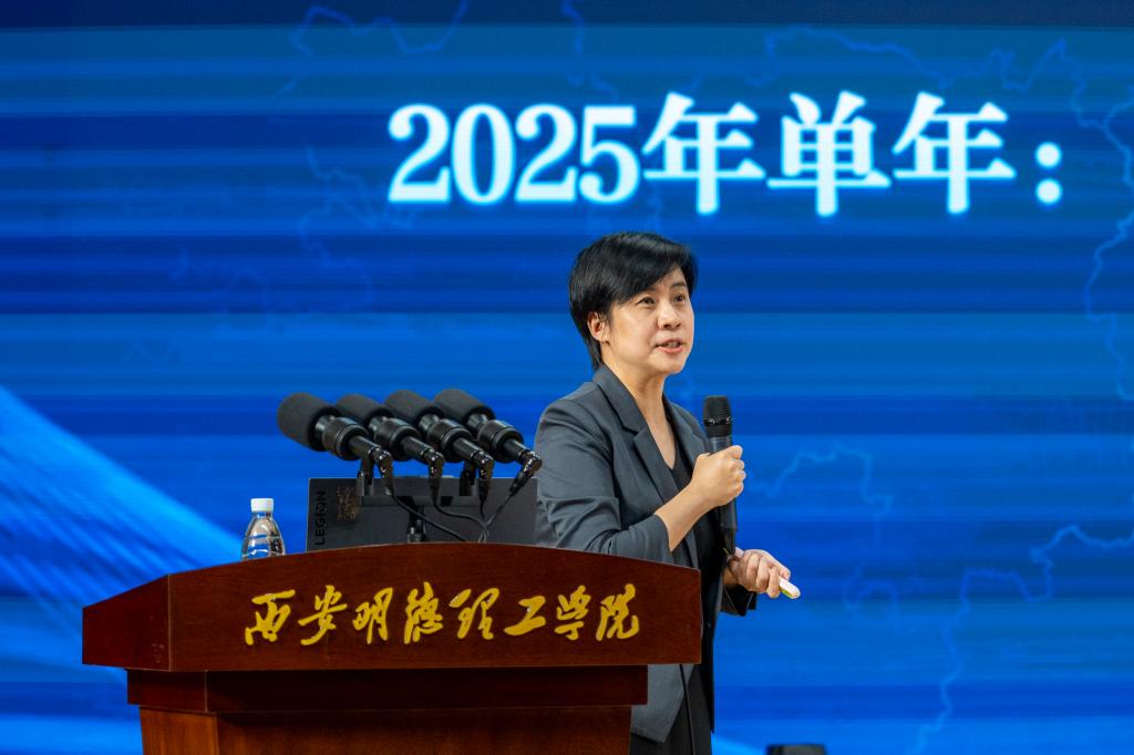 西北工业大学贺苗老师则以《科技报国的使命担当》为主题,结合时代发展与青年使命,带来一场振奋人心的思政宣讲。贺苗老师开篇便直击核心,深刻阐释新时代青年树立科技报国远大理想的必要性,指出科技自立自强是国家发展的战略支撑,青年学子作为国家未来建设者,肩负着科技强国的时代重任。随后,她结合新时代伟大实践,细数我国取得的突破性科技成果,用一个个鲜活案例展现中国科技的飞速发展,让师生真切感受到国家科技实力的跨越式提升。最后,聚焦青年担当,向在场学子发出时代号召,勉励大家立足专业学习,将个人理想融入国家发展大局,以实际行动响应强国号召,在科技创新的道路上勇毅前行,争做科技报国的生力军。