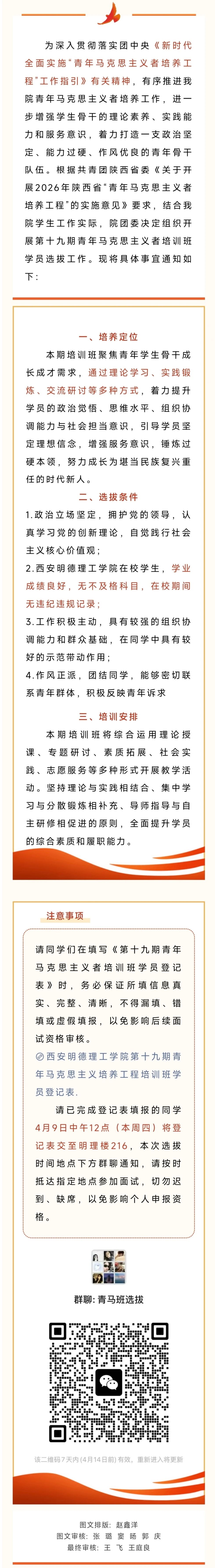 明德科技职业学院团委关于开展第十九期青年马克思主义者培训班学员选拔的通知