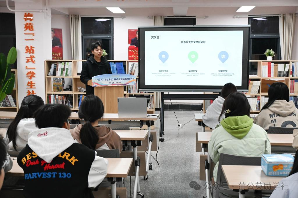 本次活动的主讲人是来自蒲公英励学协会奖助服务部的部长赵志博。他为同学们介绍了国家资助政策体系,尤其是学校现行资助政策、奖学金等核心内容进行讲解。赵志博结合自身经历,以最易懂的方式将奖学金、助学金以及如何解决学费难题的相关问题向同学们进行了解释,并且此次活动还设置了互动答疑环节,大家可以就自己关心的问题与赵志博进行面对面交流,帮助同学们更深刻地了解了此次“资助专题讲座”的内容。