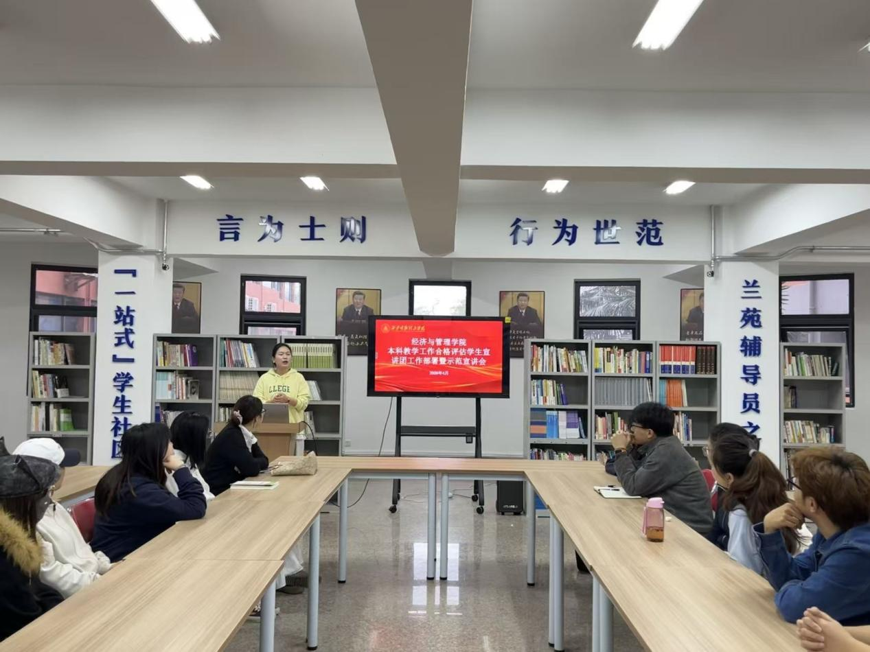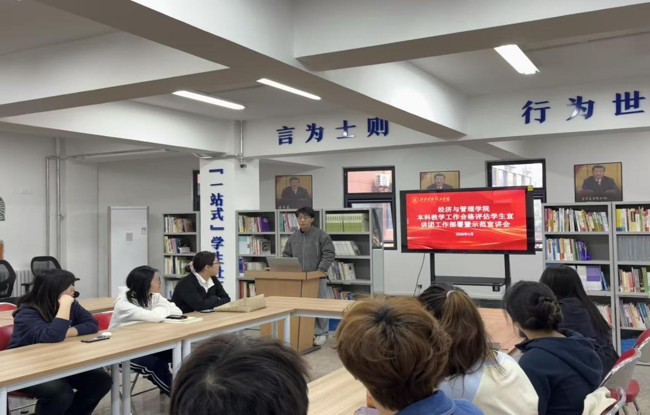 为深入贯彻落实学校本科教学工作合格评估相关要求,全面压实学生层面迎评促建工作责任,充分发挥学生宣讲团示范引领作用,2026年4月,西安明德理工学院经济与管理学院召开本科教学工作合格评估学生宣讲团工作部署暨示范宣讲会。本次会议全面总结上一阶段工作成效,深刻剖析现存问题与不足,系统部署本学期重点任务,以示范宣讲为抓手,推动迎评促建工作走深走实、见行见效。
