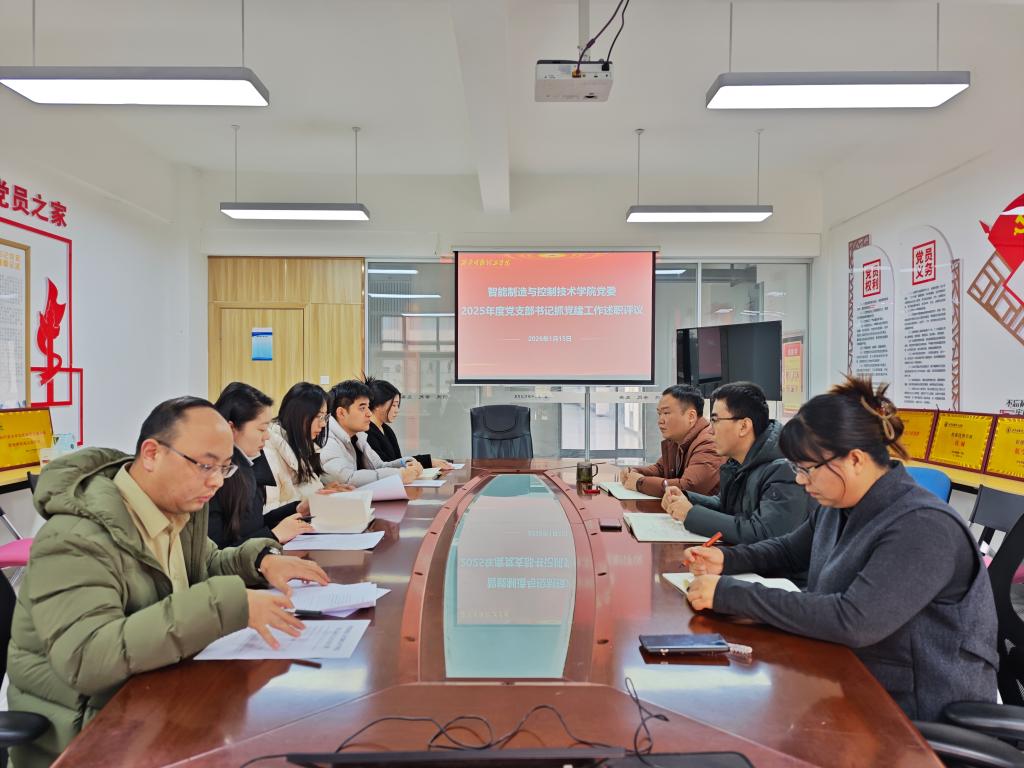 为深入学习贯彻习近平新时代中国特色社会主义思想和党的二十大及二十届历次全会精神,进一步推动全面从严治党向基层延伸,充分发挥党支部战斗堡垒作用和团组织桥梁纽带作用,提升党支部书记综合素质和履职能力,持续深化党建带团建工作机制,引领青年学生在学院发展中挺膺担当。2026年1月15日上午,智能制造与控制技术学院党委在明志楼北304会议室开展2025年度党支部书记抓党建工作述职评议考核暨团委工作汇报。学院党委委员、各党支部书记、团委书记参加会议。会议由党委书记陈雪彬主持。