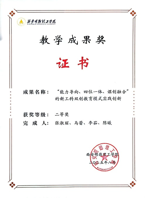 教学改革:获校级教学成果二等奖1项,主持校级一流课程1门。