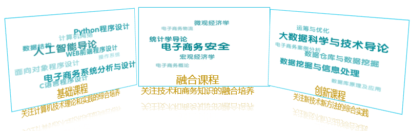 电子商务专业课程注重夯实基础、知识融合、贴近前沿,核心课程和专业方向课程如下图所示。