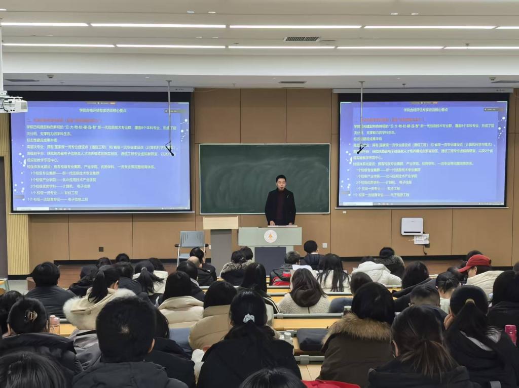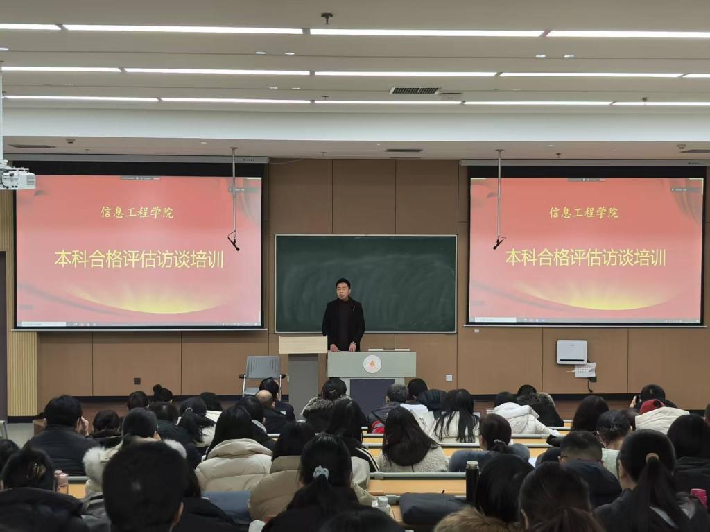 为切实做好本科教学工作合格评估迎评工作,夯实评估工作基础,提升教职工迎评履职能力,2026年1月9日下午,信息工程学院召开全院教职工大会,专题开展本科合格评估访谈培训。学院党委副书记高长江主持会议,全体教职工参加培训。