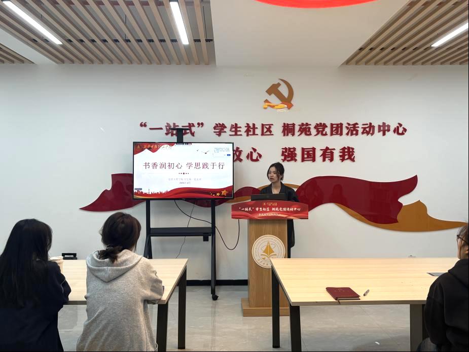 随后,党支部开展红色经典读书分享交流。宣传委员张思甜结合《青春之歌》,讲述革命青年追求理想的成长故事,阐述青年党员的责任与担当;预备党员许超越结合《红星照耀中国》,回顾革命先辈艰苦奋斗的峥嵘岁月,带领大家感悟共产党人的初心使命;发展对象邓文娟交流《红岩》读后体会,学习革命先烈坚贞不屈、忠诚担当的崇高品格。分享结束后,与会同志围绕“如何在专业学习中践行初心使命”展开热烈讨论,现场交流氛围浓厚。