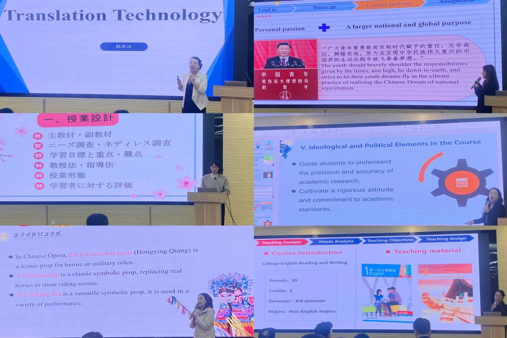 经各教研室遴选推荐,樊思江等12名教师脱颖而出,入围决赛。比赛中,参赛教师紧密结合学科专业特点,巧妙融入思政元素,充分展现了扎实的教学功底与鲜明的育人导向。在竞赛展示环节,各位教师围绕家国情怀、文化自信、职业道德、科学精神、创新意识、责任担当等核心思政要素,进行了精彩纷呈的教学呈现。