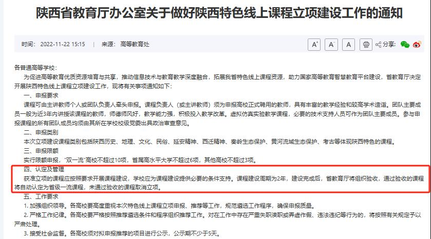 陕西省教育厅本次组织了对全省立项建设的135门特色线上课程集中结题验收,最终确定127门课程予以通过。我校是立项课程全部通过验收的院校之一,彰显了学校在特色课程建设、线上线下混合式教学改革方面的扎实成效与深厚潜力。