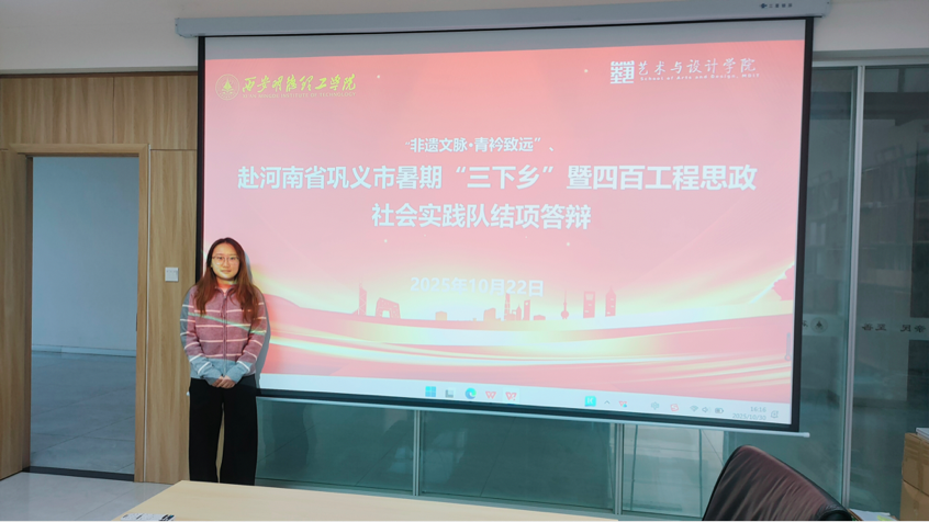 10月22日,西安明德理工学院艺术与设计学院“三下乡”暑期社会实践活动结项答辩会在0号楼507教室顺利举行。本次答辩汇聚了20支实践队伍,各队通过详实的汇报全面展示实践成果,最终全部顺利通过答辩,为学院暑期社会实践工作画上圆满句号。