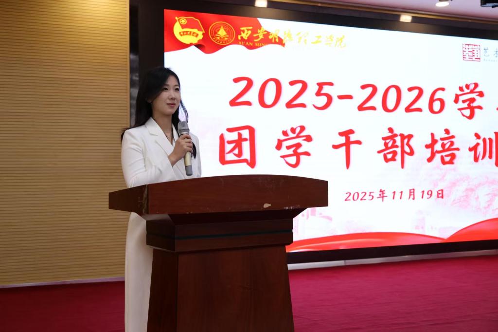 为全面提升团干部的综合素养与履职能力,强化基层团组织的凝聚力与战斗力,2025年11月19日(周三)下午,西安明德理工学院艺术与设计学院于建德楼203教室隆重举行团干部素质能力培训会。本次培训会由李婉婷同学主持,学院党委副书记乔建老师应邀出席并作专题授课,全院各级团干部齐聚一堂,共同开启了本次赋能提升之旅。