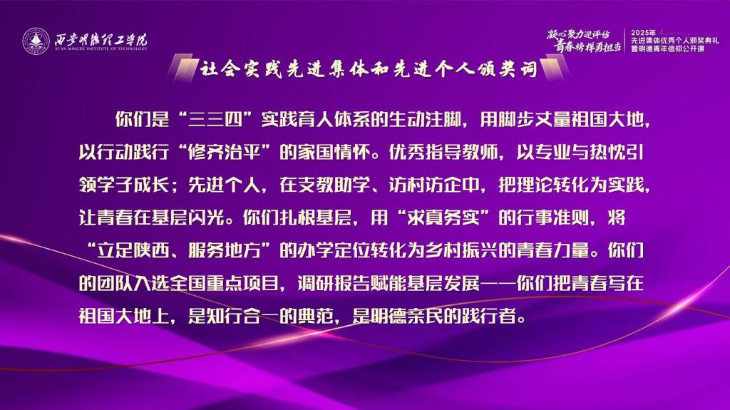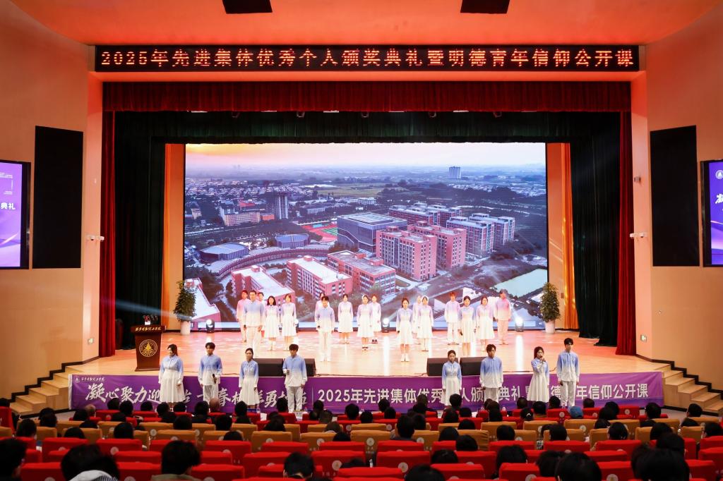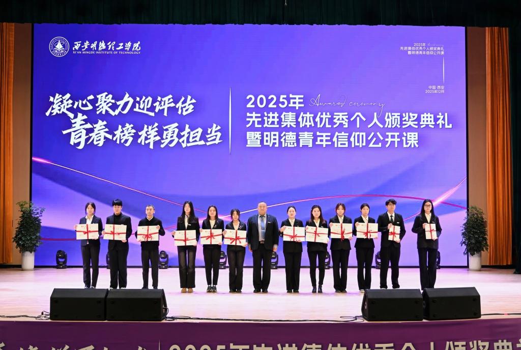 为表彰先进,树立榜样,激励更多青年学子奋勇前行,12月10日,学校在四季廊桥报告厅举行“凝心聚力迎评估 青春榜样勇担当”2025年先进集体、优秀个人颁奖典礼暨明德青年信仰公开课,表彰过去一年师生群体中涌现的先进集体和优秀个人,共同见证明德学子的收获与成长。