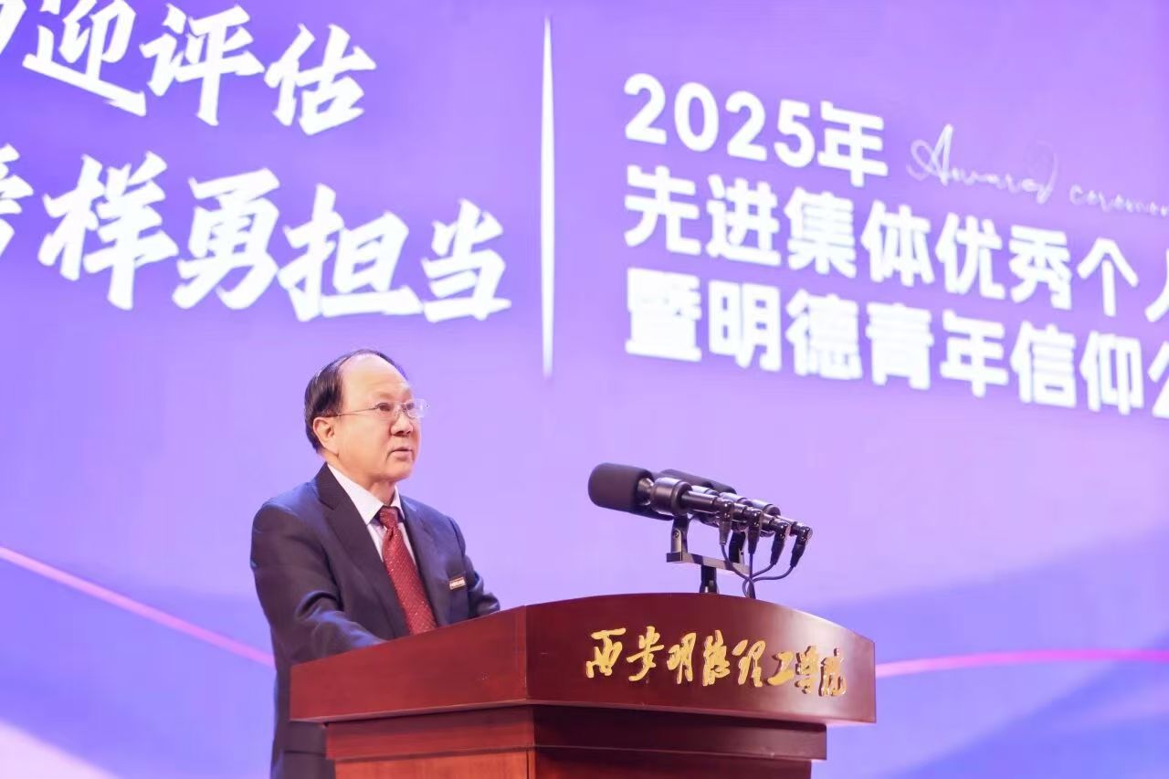 他从个人成长、集体建设、专业提升、实践育人等方面回顾了过去一年校园里学生的榜样故事,并从“立大志、明大德、成大才、担大任”四个维度寄语青年学子:一要坚定理想信念,在成才报国中把准人生航向;二要锤炼品德修为,在砥砺品格中涵养高尚情操;三要加强专业学习,在精进学业中夯实担当根基;四要勇于担当作为,在投身评估中展现青春风采。他希望全体明德学子以受到表彰的先进典型为榜样,将个人理想融入国家发展与学校评建大局,秉承明德人精神特质,践行社会主义核心价值观,利用优质教学资源提升实践与终身学习能力,以主人翁姿态投身评估工作,规范言行、建言献策,共同书写学校高质量发展新篇章,努力成长为堪当民族复兴大任的时代新人。