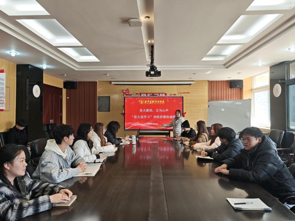 11月25日中午,明德科技职业学院“星火说学习”宣讲团在明理楼216会议室组织开展“星火燎原,言为心声‘星火说学习’”训练营自主模拟演练。宣讲团20名成员围绕学校评建核心任务,以自主策划、自我督查的形式完成实战训练,全面锤炼宣讲能力,为学校评建工作蓄力。