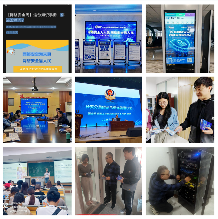 2025年9月15日至21日,在全国网络安全宣传周期间,西安明德理工学院紧紧围绕“网络安全为人民,网络安全靠人民——以高水平安全守护高质量发展”主题,组织开展了形式多样、内容丰富的网络安全宣传教育活动,切实增强了全校师生的网络安全意识与防护能力。