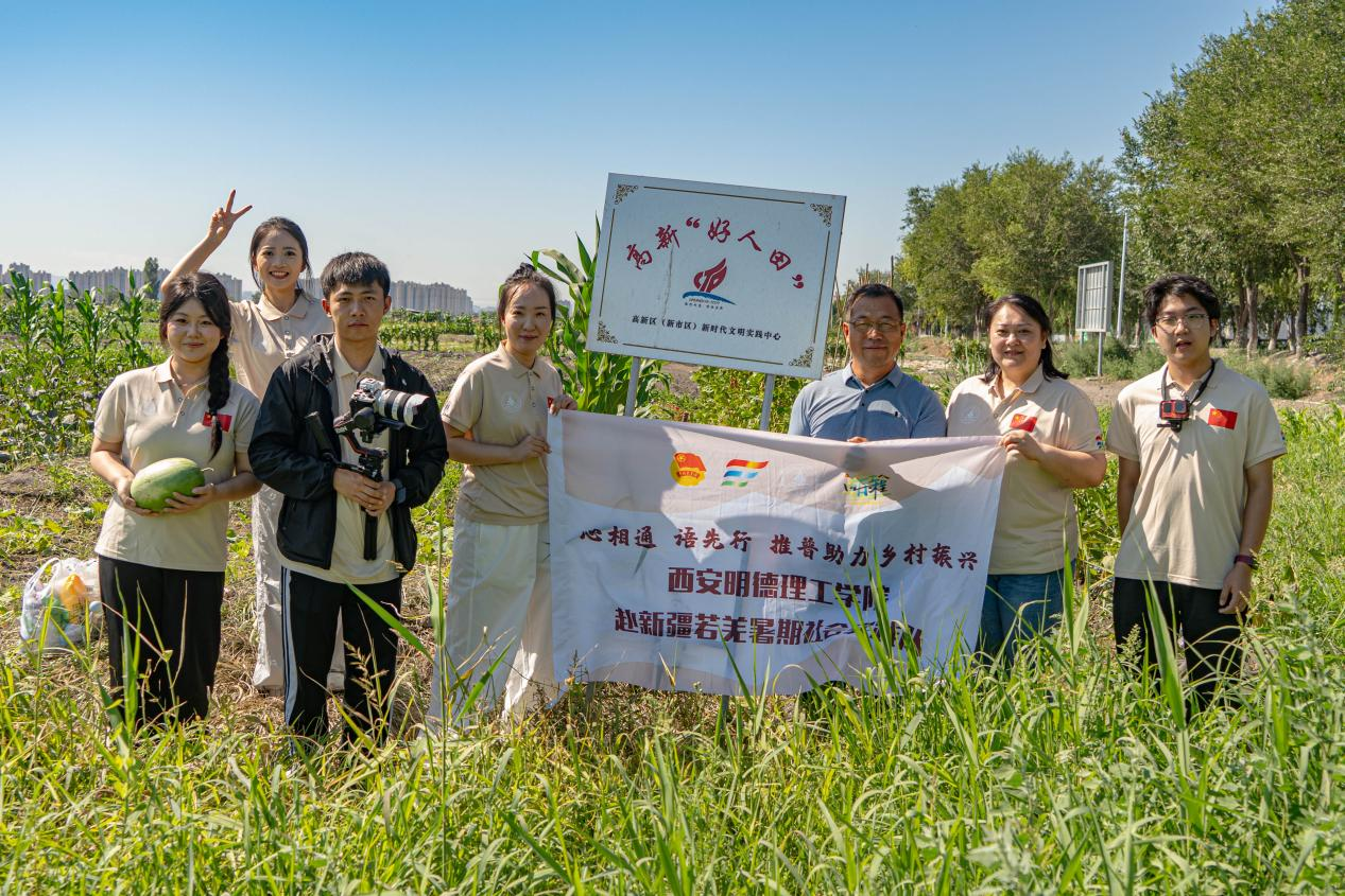 7月8日,西安明德理工学院艺术与设计学院播音与主持艺术专业暑期社会实践项目——《“心相通·语先行”赴新疆若羌推普助力乡村振兴服务队》再度启程。该团队连续两年入选教育部“推普助力乡村振兴”全国大学生暑期社会实践志愿服务活动,在孟舒楠、陈叶娟两位老师带领下,播主专业学子循去年足迹,再赴新疆乌鲁木齐与若羌,让推普种子在边疆持续扎根生长。
