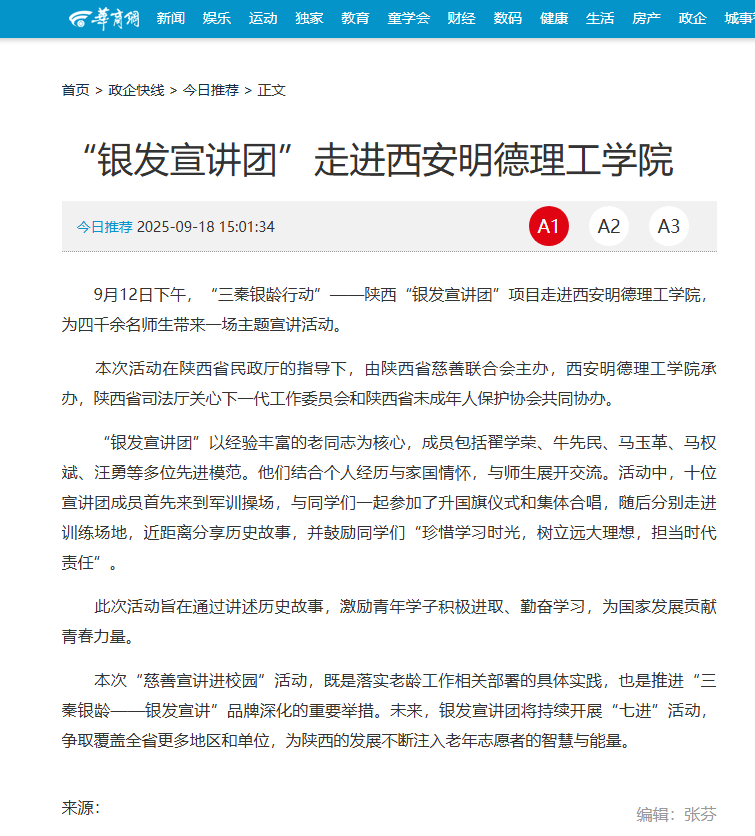 【华商网】“银发宣讲团”走进西安明德理工学院