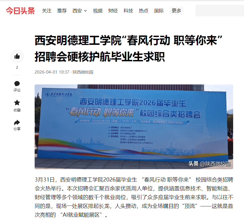 此次招聘会的成功举办,不仅为毕业生与用人单位搭建了精准对接的桥梁,更展示了西安明德理工学院在就业服务数字化转型中的积极探索。当人工智能与就业指导深度融合,求职不再是一场“单打独斗”的硬仗,而成为一条有方向、有方法、有支持的成长之路。