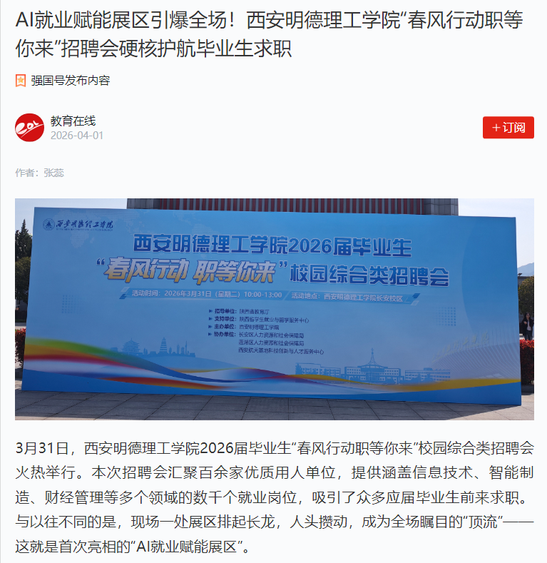 此次招聘会的成功举办,不仅为毕业生与用人单位搭建了精准对接的桥梁,更展示了西安明德理工学院在就业服务数字化转型中的积极探索。当人工智能与就业指导深度融合时,求职不再是一场“单打独斗”的硬仗,而成为一条有方向、有方法、有支持的成长之路。