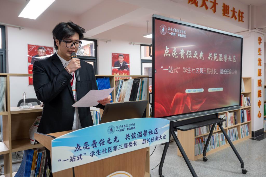 大会伊始,党委学生工作部王悦琳宣读了《关于“一站式”学生社区楼长、层长任命的决定》文件,本届共有18名同学获聘楼长,60名同学获聘层长。