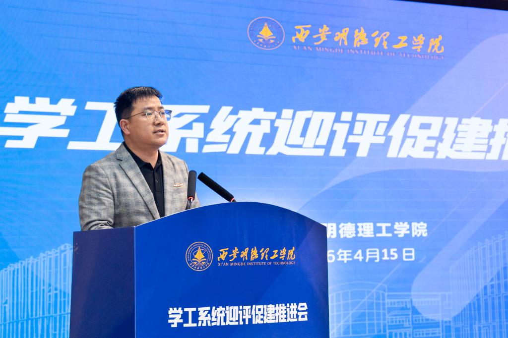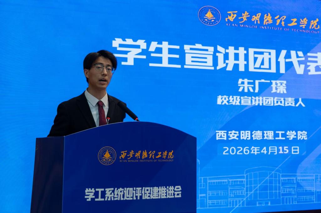 学生干部代表、校学生会主席团成员李旭帆在发言中回顾了过去一年团学组织围绕评估攻坚开展的系列工作,充分展现了明德学生干部的青春担当。他代表全体学生干部承诺,将带头吃透评估要求、带头严守校规校纪、带头配合迎评部署,以实际行动为全体同学立标杆、做示范。