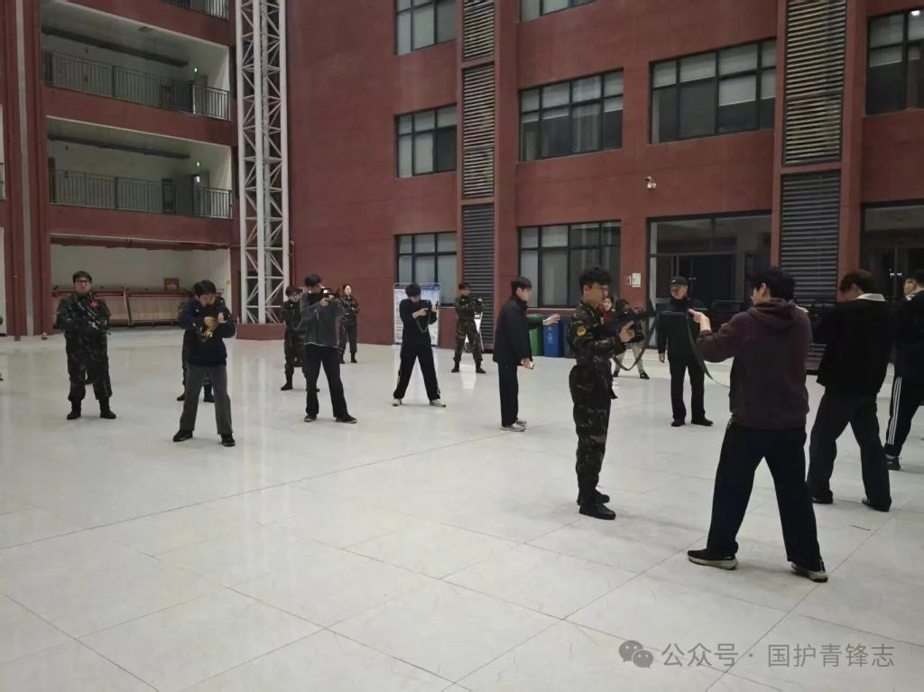 训练从军姿起步。教官口令铿锵,队员们瞬间进入状态:头正颈直、下颌微收、双腿并拢、两肩后张,每一个动作都精准到分毫。汗水浸透衣衫,双腿酸痛发麻,却无一人松懈。站军姿,是对意志的极致锤炼,更是“护卫国旗,重于生命”信念的深刻践行,为所有技能训练筑牢根基。
