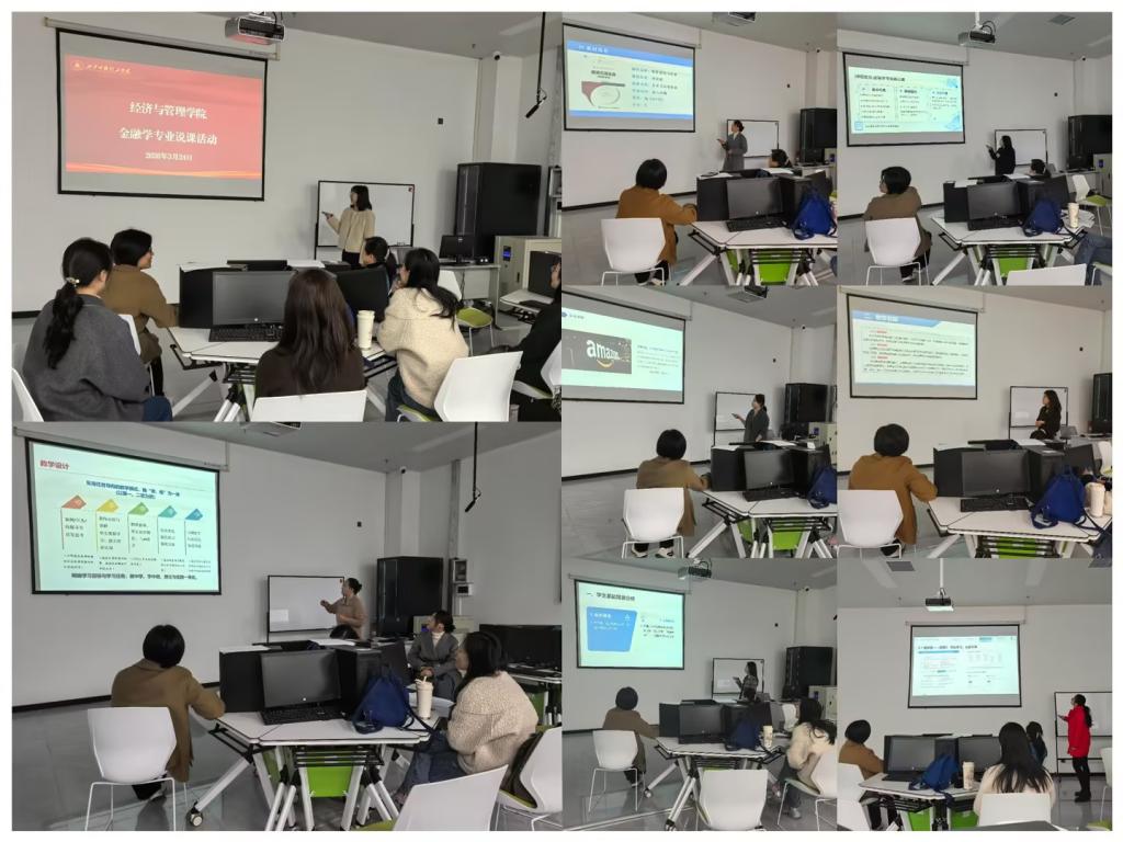 为进一步落实立德树人根本任务,深化课堂教学改革,提高教学质量,3月24日,金融学专业组织开展了“以赛促教·共研成长”说课活动。专业8位中级及以下职称教师全员参与,围绕本学期所授课程进行说课展示。专业负责人张莉萍、教师李妍、孙敏担任评委,对说课进行点评指导。