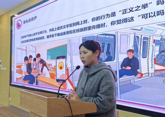 邢雨晨老师以“民法典:你我一生的‘人生指南’”为题,深入浅出地阐述了《民法典》与公民个人从出生到晚年各个人生阶段的密切关联,通过生动案例解读了这部“社会生活的百科全书”如何保障公民合法权益。车海肖老师聚焦“网络空间不是法外之地:大学生必备的四大法律避险指南”,针对当前大学生常见的网络行为,清晰指出了潜在的法律风险,并提供了切实可行的防范建议,引导同学们文明上网、依法用网。高超老师则以“数据安全‘防火墙’,为公民安全‘保驾护航’”为主题,深入剖析了数字化时代个人数据安全面临的挑战与保护的重要性,提升了同学们的信息安全防护意识。最后,惠斌老师结合《中华人民共和国法治宣传教育法》,以“学法治宣传教育法,绘全民守法新图景”为题,阐述了普法教育对于推动全社会树立法治信仰、建设法治国家的深远意义。