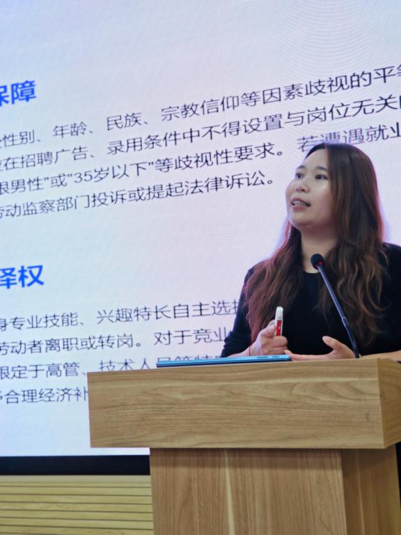 活动以“深入学习宣传贯彻习近平法治思想,推动宪法精神深入人心”为主题,特邀杨帆、康娜、樊静三位教师担任主讲。杨帆老师以“劳动法——守护未来职场权益”为题,结合大学生就业实际,深入解析了劳动合同、劳动争议等常见法律问题,通过生动案例与法条讲解,增强了同学们对劳动法的直观理解。康娜老师系统解读了《中华人民共和国民法典》,借助具体案例阐明民法与日常生活的紧密联系,引导学生认识民法的重要作用。樊静老师围绕《中华人民共和国爱国主义教育法》的立法的经过、立法的重要意义和违反《爱国主义教育法》的典型案例三个方面进行解读,引导大学生要自觉成为“依法爱国、依法护国、依法强国和依法富国”的时代新人。活动现场秩序井然,学生认真聆听、积极提问,尤其在互动环节就“实习合同陷阱”等实际问题与老师交流,获得了实用建议。